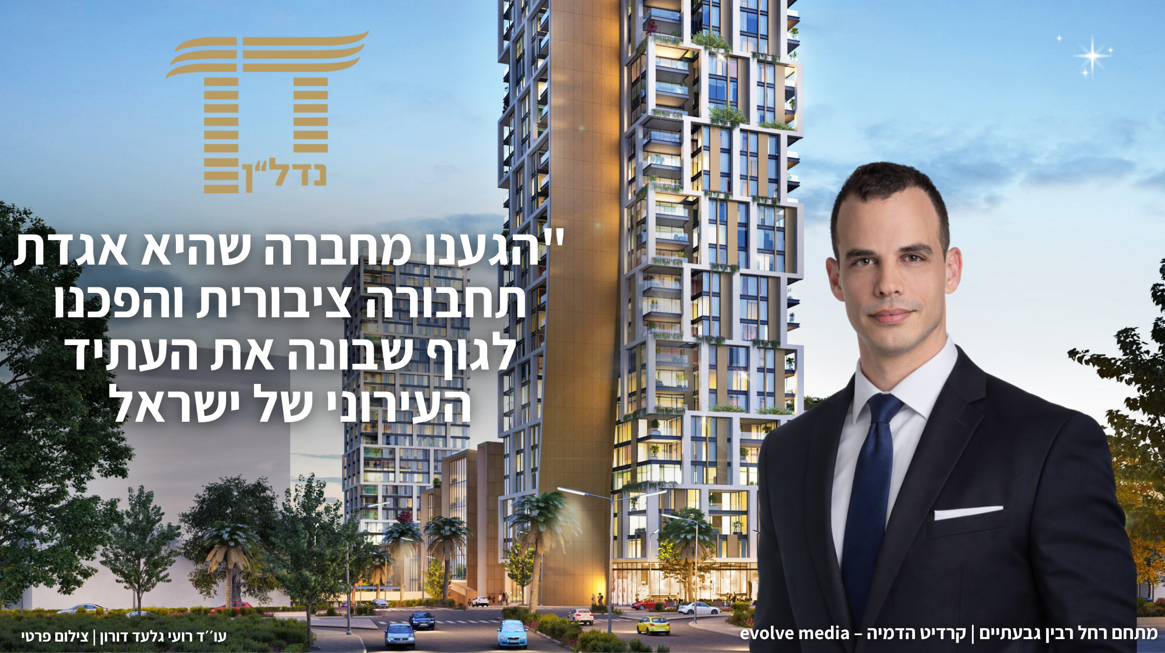 רועי גלעד דורון, עורך דין, משמש כמנהל דן נדל"ן התחדשות העירונית מקבוצת דן נדל"ן .